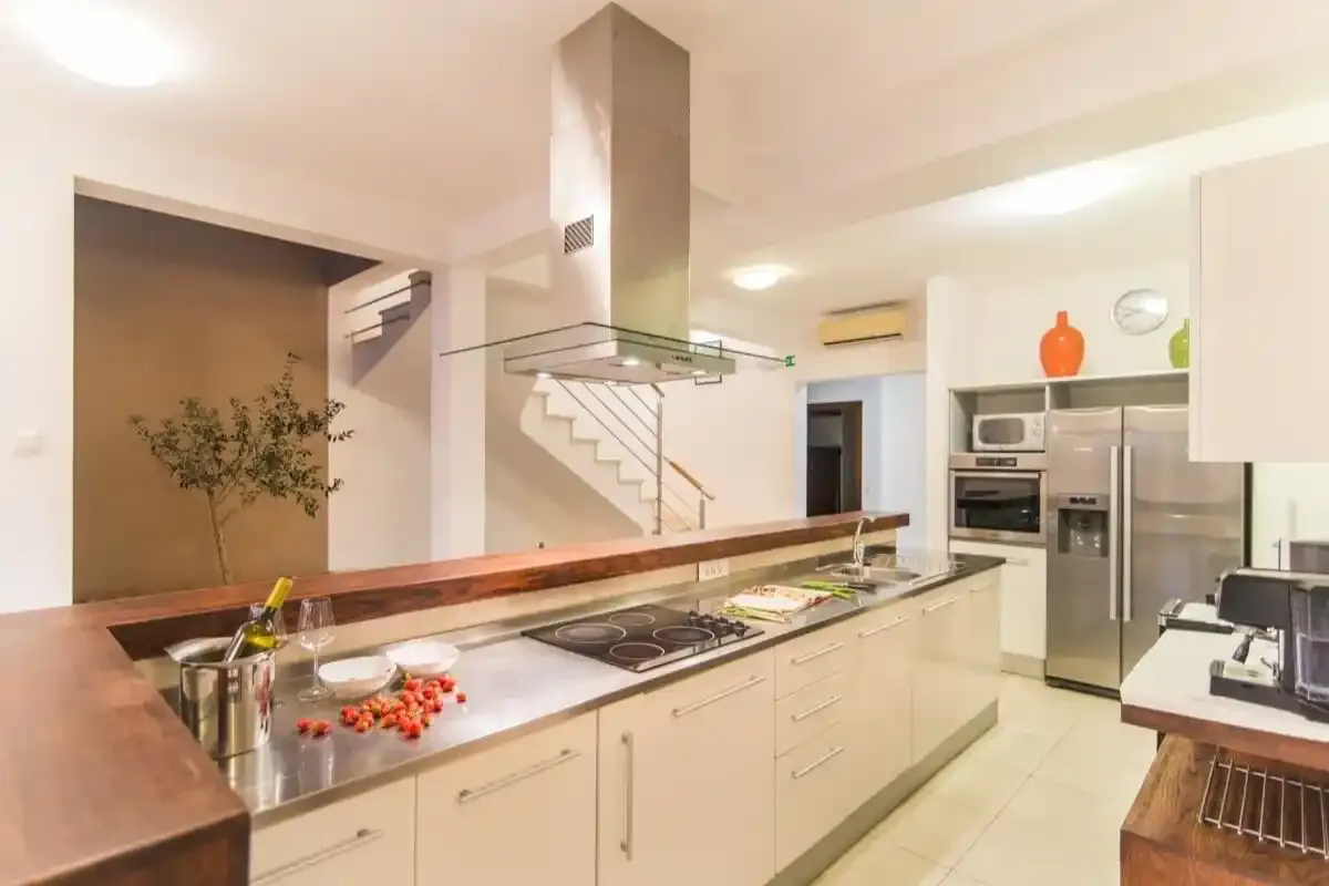 Die Villa bietet Platz für bis zu 13 Gäste und besteht aus einem Haupthaus mit 4 Schlafzimmern sowie einem Nebengebäude mit 2 weiteren Schlafzimmern.